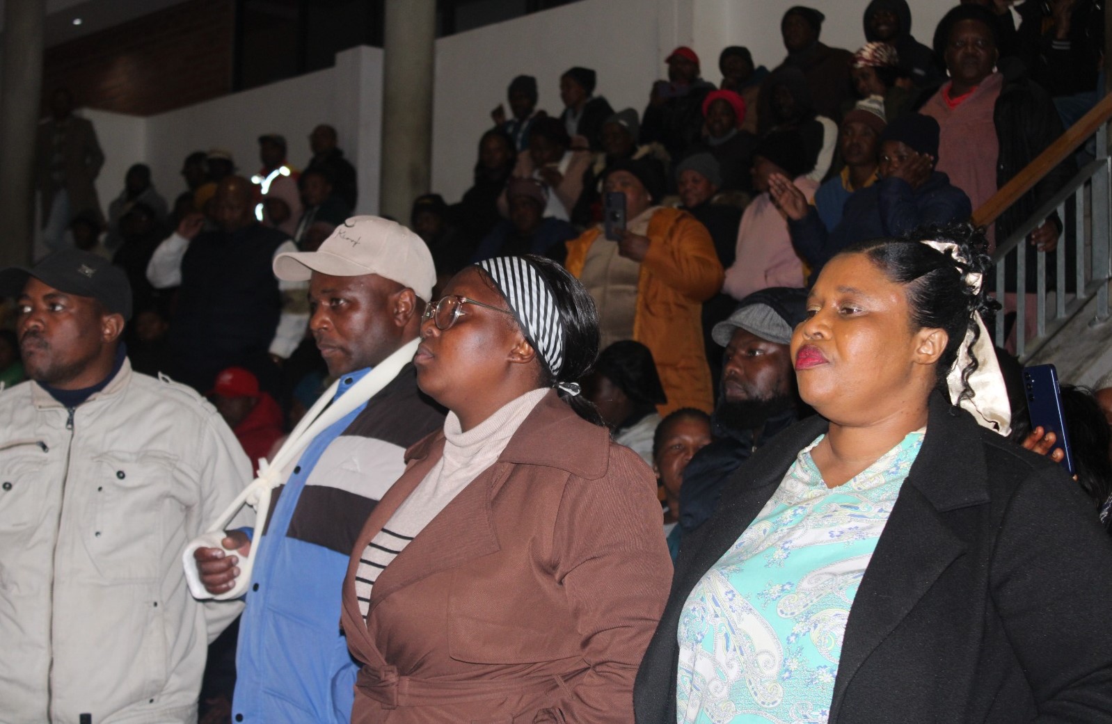 Makhanda residents who are at loggerheads with the Makana Municipality over a piece of vacant land pictured during a heated meeting at the Joza Indoor Sports Centre on Thursday. Photo: Luvuyo Mjekula
