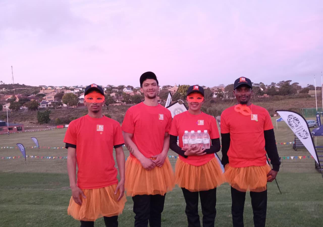 The running competition was a means of raising funds to repair the Mountain Drive Road and support initiatives such as Meals for Miles. It also gave businesses the opportunity to network with other businesses. Teams came together and dressed in the best running outfits they could find, in attempts to win the prize for best dressed. One team, Team Invincible in red hard hats, won a prize for having the best baton. Whilst other teams, such as the BuCo team in bright orange, kept their spirits high after a long run for a good cause.